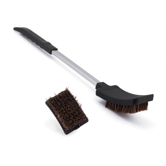 Szczotka z włosiem z palmy z serii Baron znakomicie ochroni delikatną i wrażliwą powierzchnię rusztów żeliwnych grilli gazowych marki Broil King. Włosie z palmy jest sztywne, ale też delikatne, dzięki czemu świetnie radzi sobie z czyszczenie uciążliwych zabrudzeń, ale jednocześnie nie rysuje powierzchni rusztów. Szczotką można czyścić nawet gorący ruszt (do 232ºC). Wyposażona jest w ergonomiczną, wygodną rączkę oraz uchwyt umożliwiający powieszenie szczotki na haku grilla.