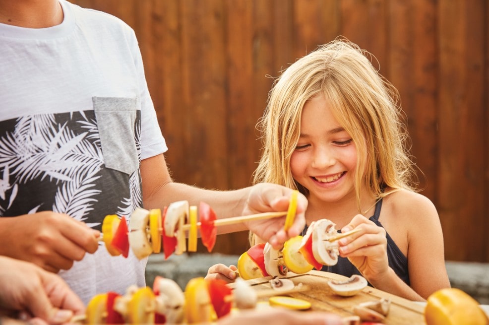 Łącz warzywa na grilla z serem halloumi, fetą czy mięsem, dzięki temu powstaną barwne szaszłyki.