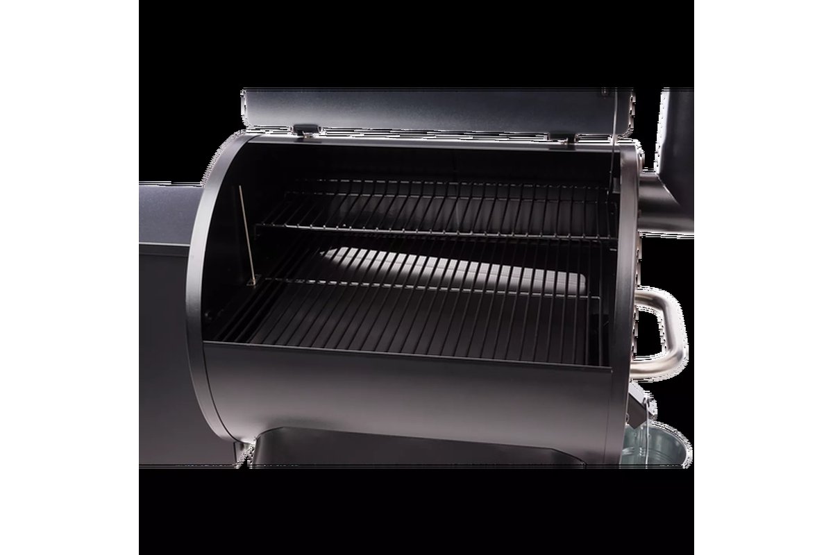 Model Pro Series 22 oferuje dużą powierzchnię roboczą, która pozwala na jednoczesne przygotowywanie kilku potraw, zarówno na głównym ruszcie, jak i na górnej półce podgrzewającej. Taka konfiguracja umożliwia równoczesne grillowanie, dopiekanie lub utrzymywanie temperatury gotowych dań bez ryzyka ich przesuszenia. Emaliowane ruszty żeliwne dobrze akumulują ciepło, równomiernie je rozprowadzają i są łatwe w czyszczeniu po zakończonym grillowaniu.