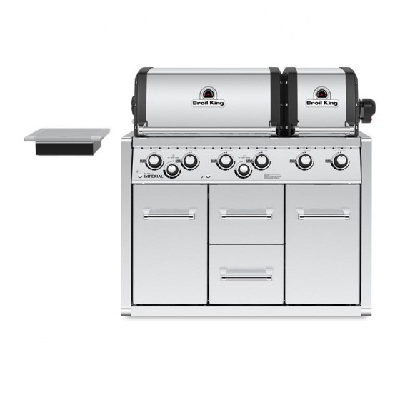 Ogromna powierzchnia robocza pozwala na przygotowanie wielu dań dla wszystkich gości jednocześnie. Model wyposażony jest dodatkowo w żeliwną boczną kuchenkę, na której możesz w każdej chwili przygotować zupę, podgrzać sos, czy zaparzyć herbatę oraz pełen zestaw do pieczenia na rożnie. Wbudowany duży piekarnik Therma Cast ze światłami w środki pozwoli Wam cieszyć się zabawą, nawet gdy zapadnie zmrok. Masywne półki boczne zwiększają powierzchnię roboczą i są świetnym miejscem na trzymanie zawsze pod ręką niezbędnych narzędzi oraz ulubionych przypraw. To wszystko czyni grill Imperial od Broil King niezawodnym kompanem każdego fana grillowania – zarówno amatora, jak i prawdziwego profesjonalisty. Dla wszystkich, którzy wymagają od życia więcej!