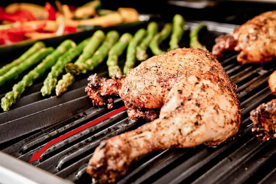 - Jedzenie ma większy kontakt z powierzchnią rusztu