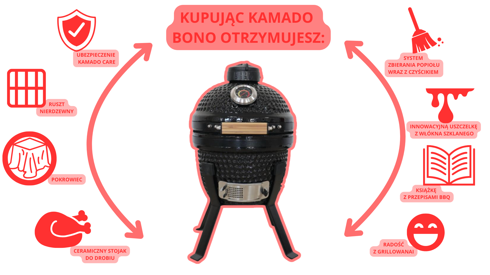 Marka Kamado Bono stawia na trwałość i solidne wykonanie. Wysokiej jakości materiały chronią grill przed pęknięciami i przegrzewaniem się obudowy, a dopracowane detale zapewniają komfort i bezpieczeństwo użytkowania. To sprzęt zaprojektowany z myślą o wieloletnim, intensywnym użytkowaniu.