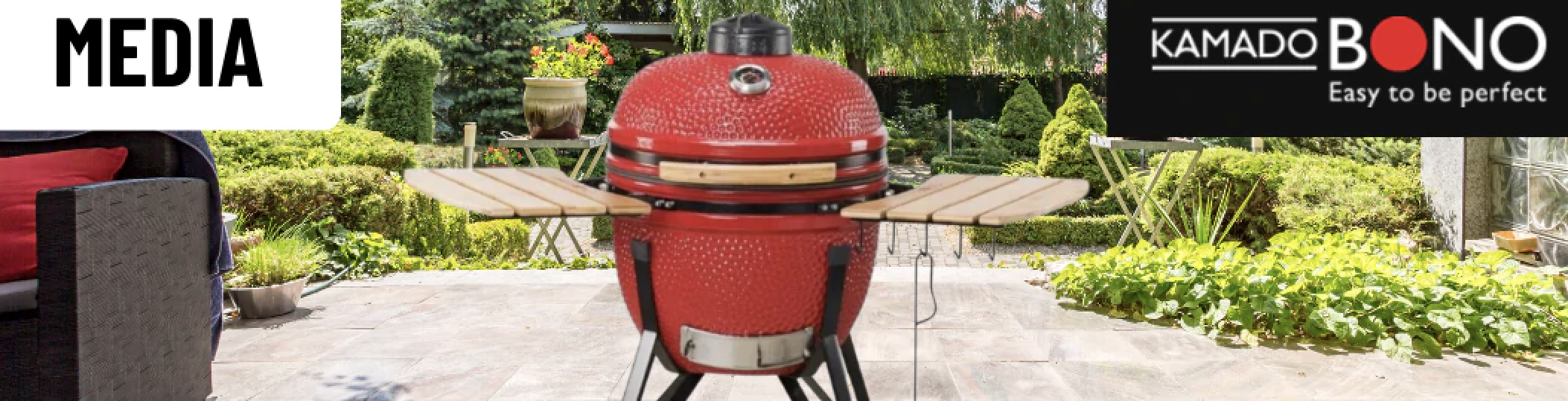 Grill ceramiczny Kamado Bono MEDIA to niezwykle praktyczny model, który dzięki swoim gabarytom i dużej powierzchni grillowania pozwala przygotowywać większe dania oraz eksperymentować z pokaźniejszymi porcjami mięsa. Doskonale sprawdzi się na mniejszym balkonie, tarasie lub w niewielkim ogrodzie, oferując pełnię możliwości grilla ceramicznego.