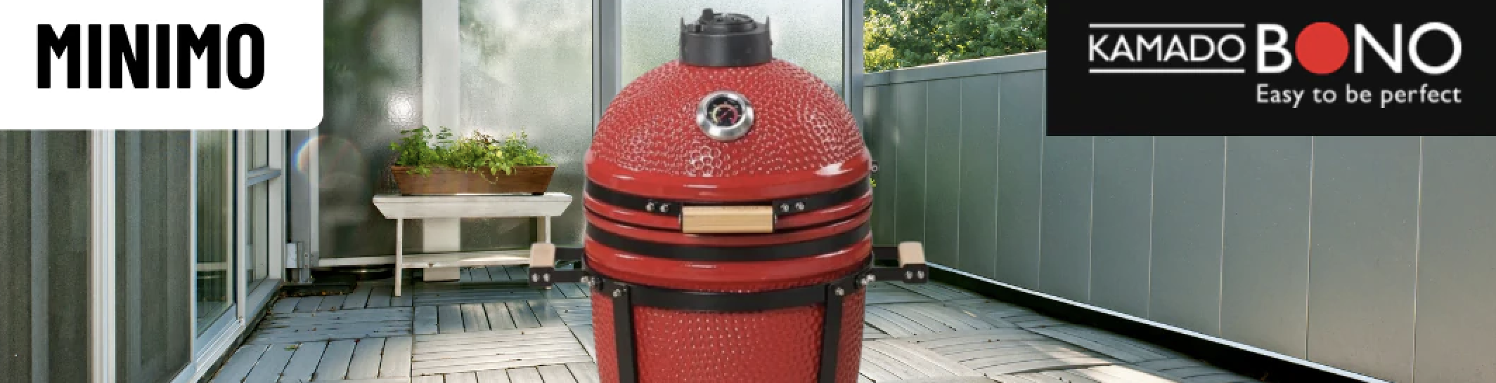 Grill ceramiczny Kamado Bono MINIMO to niezwykle praktyczny model, który dzięki niewielkim wymiarom nie wymaga dużej przestrzeni. Doskonale sprawdzi się na mniejszym balkonie, tarasie czy w niewielkim ogrodzie, oferując pełnię możliwości grilla ceramicznego w kompaktowej formie.