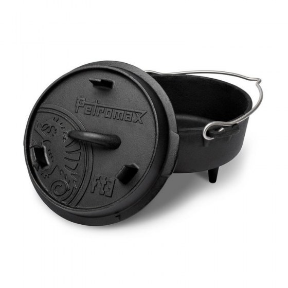 Kociołek żeliwny Dutch Oven 1,6 L na nóżkach Petromax to porządnie wykonane naczynie żeliwne, umożliwiające przyrządzanie potraw nad otwartym ogniem, na grillu, a także w piekarniku w domu oraz na większości dostępnych kuchenek. Kociołek o pojemności 1,6 litra pozwoli przygotowywać w wygodny sposób pyszne posiłki, delikatnie ugotowane we własnym sosie. Solidny uchwyt kociołka pozwoli Ci z łatwością podnieść naczynie, trzy nóżki pozwolą go stabilnie postawić, a dzięki otworowi na termometr będziesz w stanie sprawdzić temperaturę bez potrzeby podnoszenia pokrywki! Jeśli pokrywa Twojego kociołka posiada dodatkowe nóżki, bez problemu można ją wykorzystać jako patelnię lub półmisek.