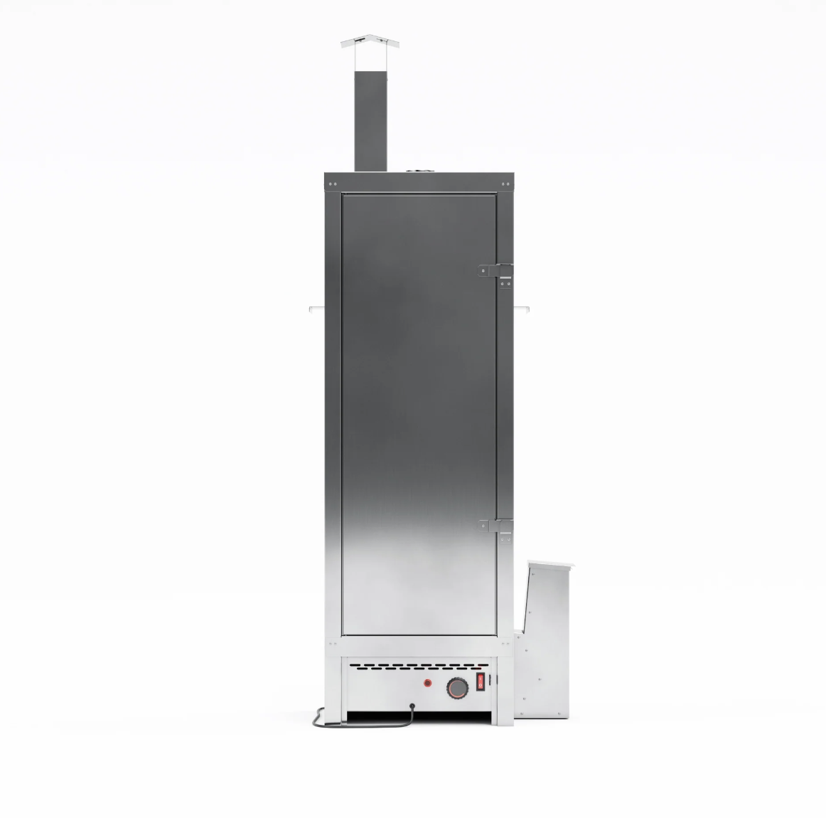 Wędzarnia została wyposażona w grzałkę rurkową o mocy 1,8 kW, która szybko osiąga i stabilnie utrzymuje żądaną temperaturę w komorze, nawet przy niskich temperaturach zewnętrznych. Wbudowany czujnik regulatora temperatury zapewnia pełną kontrolę i dokładność w zakresie do 100°C, umożliwiając nie tylko wędzenie, ale też osuszanie produktów przed obróbką.